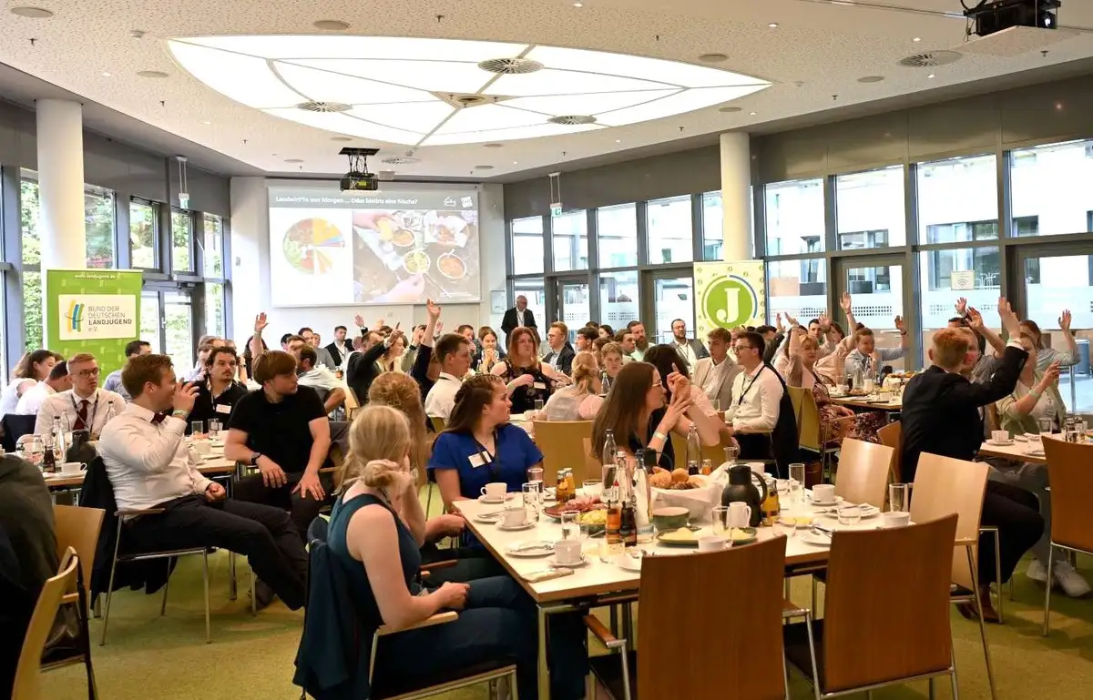 Der Bund der Deutschen Landjugend (BDL) veranstaltet beim Deutschen Bauerntag jedes Jahr den Junglandwirt:innen-Treff, der den Berufsnachwuchs zum frühen Aufstehen zwingt. Vor Eintritt in die offizielle Tagesordnung geht's da so richtig zur Sache. Beim gemeinsamen Frühstück kommen erst Expert:innen und dann der erfahrene Landwirtschaftsnachwuchs zu Wort. Kein Wunder, dass der morgendliche Wachmacher trotz langer Nacht viele Junglandwirtinnen und Junglandwirte aus ganz Deutschland anzieht. Bei der Veranstaltung diskutieren sie brennende Themen, blicken in die Zukunft und vernetzen sich bundesweit.